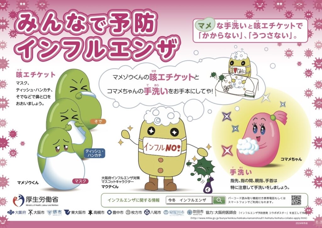 マスク・ハンカチ・ティッシュ・袖などで鼻と口をおおいましょう!