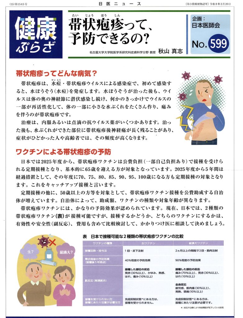 帯状疱疹ワクチン当院で接種可能です💉