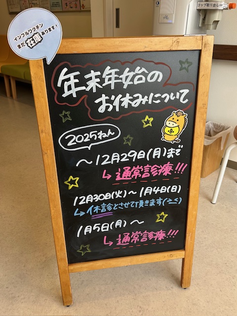 2025年12月30日(火)〜2026年1月4日(日)まで休診
