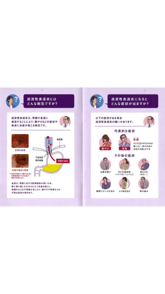 胃酸が食道に逆流することにより、胸やけなどの症状や食道に炎症が起こる病気です。